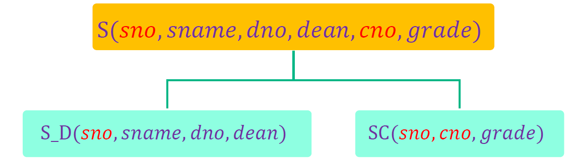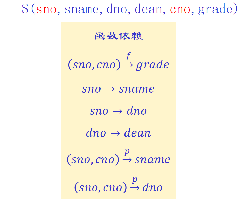 - (sno, cno) \(\overset{f}{\to}\) grade