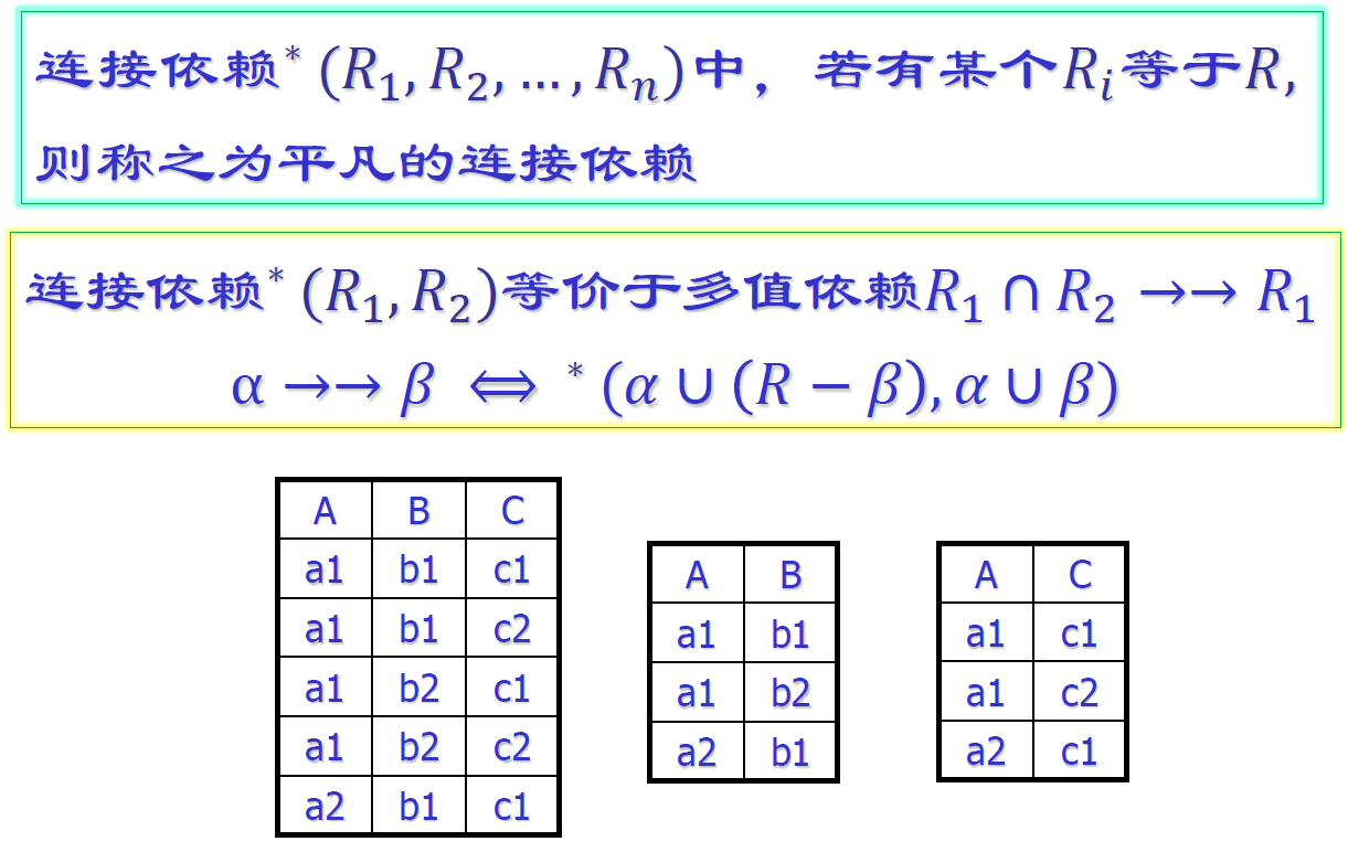 - 则称 \(r\) 满足连接依赖 \({}^\ast(R_1,R_2,\cdots,R_n)\)