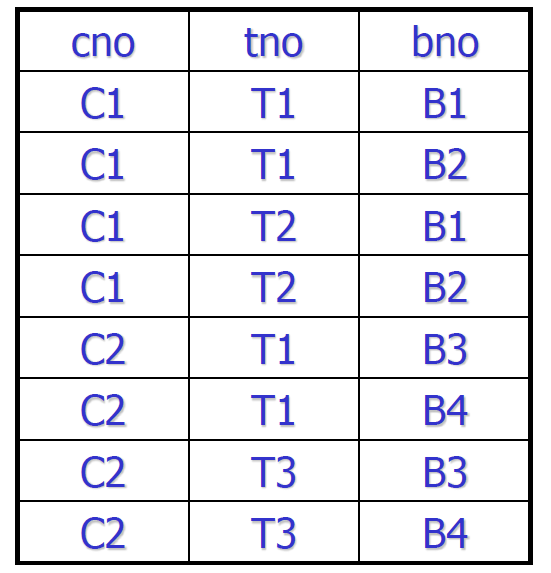 - 多值依赖要求某种形式的其它元组必须在关系中